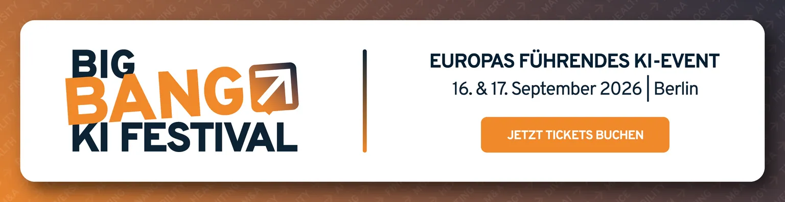 Nach dem starken Wachstum im Vorjahr und der Entwicklung hin zu einem der relevantesten KI-Events Europas erreicht das BIG BANG KI FESTIVAL 2026 eine neue Dimension. Am 16. und 17. September wird die STATION Berlin zum Treffpunkt für über 11.000 Teilnehmende und mehrere hundert Speaker:innen aus Wirtschaft, Technologie und Politik. Zwei Tage lang stehen konkrete Anwendungsfälle, strategische Einordnung und unternehmerische Umsetzung im Fokus. Kein theoretischer Diskurs, sondern Inhalte, die direkt in die Praxis übertragbar sind.